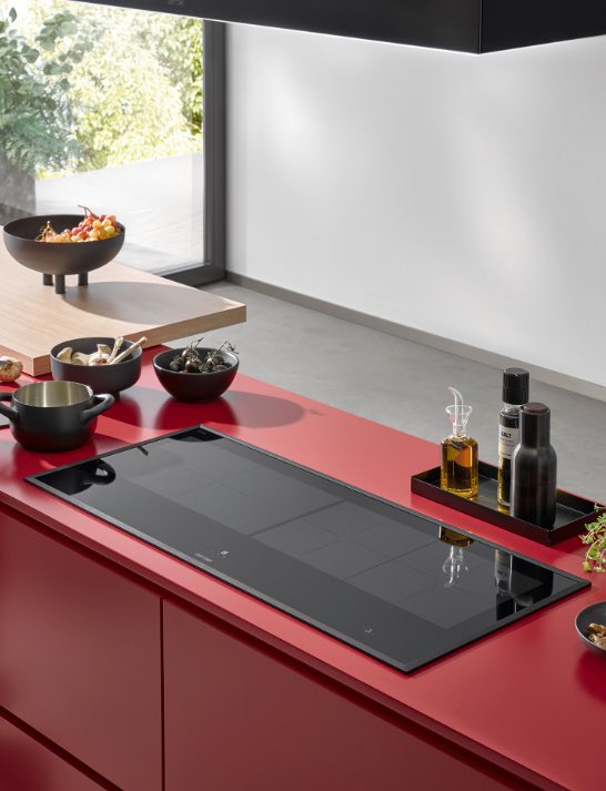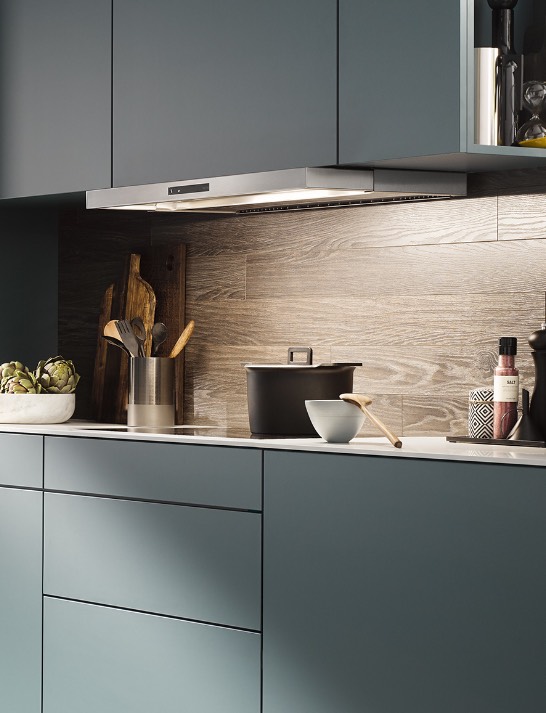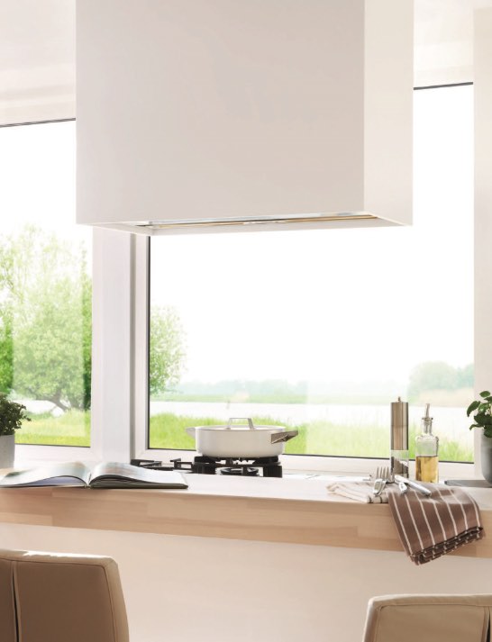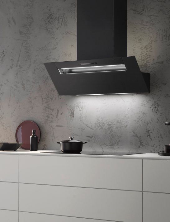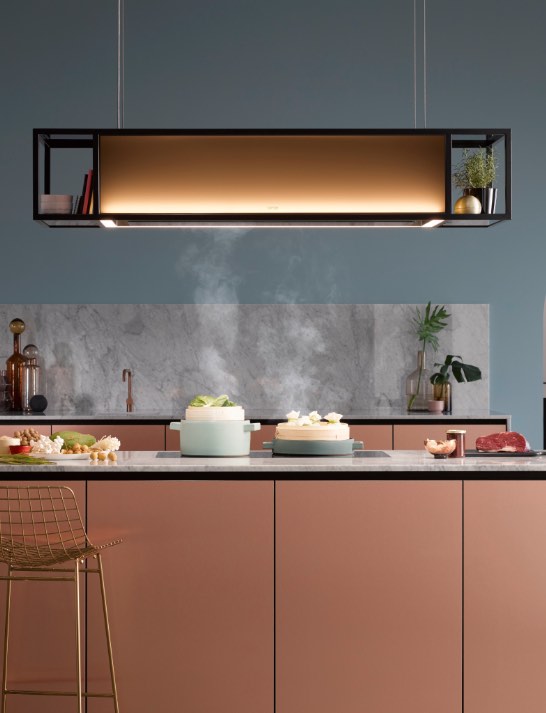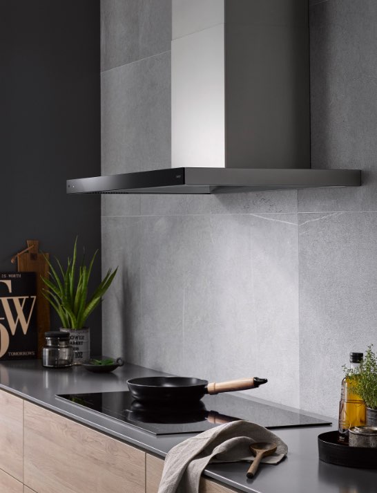 Dunstabzug und Deckenplatte der Skyline Edge Play sind farblich so vielfältig, wie die Haube selbst. Zur Auswahl steht ein Dekorglas in den Farben Mattschwarz, Schwarz, Weiß oder Silbergrau. Eine noch individuellere Option besteht darin, die Glasplatte in der Wunschfarbe aus dem RAL-Farbsystem auszuwählen. Eine Deckenplatte kann farblich passend zur Dunstabzugshaube oder aus Edelstahl in entsprechender Optik gewählt werden.