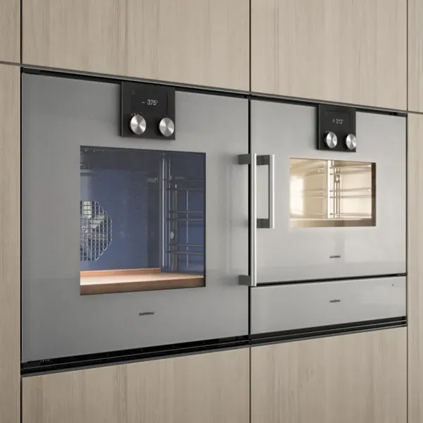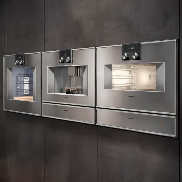 Diese Backöfen fügen sich flächenbündig in Ihre Küchenfront ein und stehen durch ihre starke Präsenz doch für sich. Zur Auswahl stehen drei Oberflächen: Gaggenau Anthrazit, Gaggenau Metallic oder Gaggenau Silber. Ein puristischer Backofen, der in einer 60 cm breiten Standardnische Platz findet.