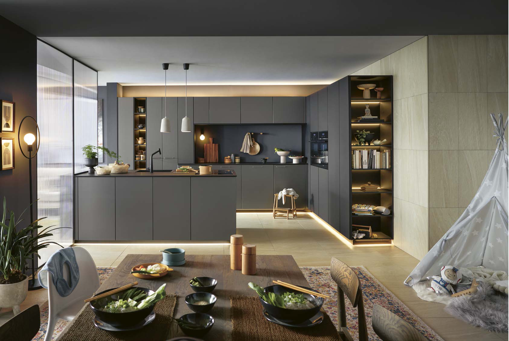 Das eigene Zuhause ist für viele Menschen ihr Lebensmittelpunkt. Also sollte man es auch so gestalten, dass man das Leben dort individuell und ganz offen genießen kann. Als einen Platz zum behag lichen Wohnen. Zum Verlieben. Und zum Verwöhnen. Dabei steht die Küche mittlerweile im Zentrum, weil sie sämtliche Bereiche emotional und funktional miteinander verbindet.