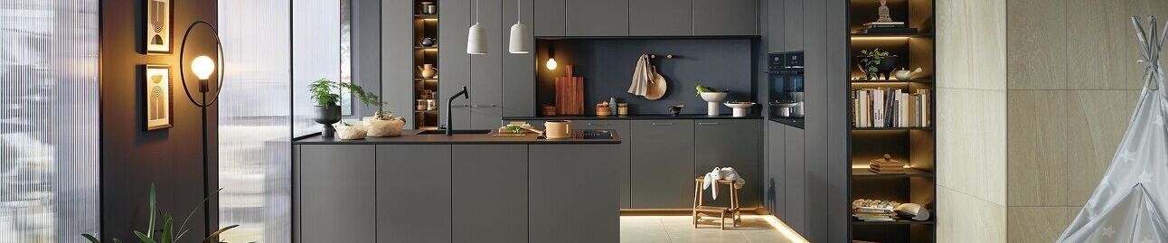 Kultivierter Küchentraum: Puristisches Design, in dem man sich rundum wohlfühlt – die richtige Planung und innovative Materialien machen dies problemlos möglich. Schüllers Smartglas matt ist eine 19 mm starke Polymerglas-Front. Ihre Oberflächenqualität ist von so hoher Ausführung, dass sie im täglichen Gebrauch besonders stabil und robust ist. Die spezielle AFP Anti-Finger-Print-Eigenschaft reduziert Fingerabdrücke und verringert den Reinigungsaufwand erheblich. Gleichzeitig lädt das zeitgemäße, samtige Design zum Anfassen und Wohlfühlen ein.